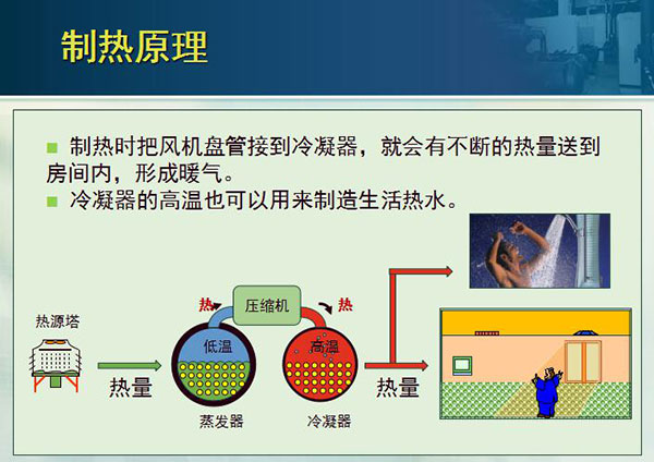 4.冬季將水蒸氣中的熱能取出來用以制熱、制造生活熱水,完全不用鍋爐。