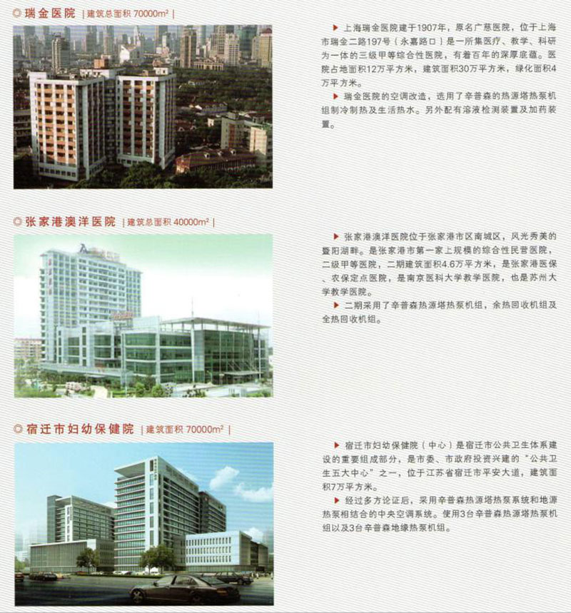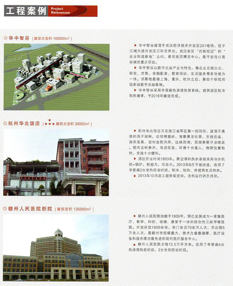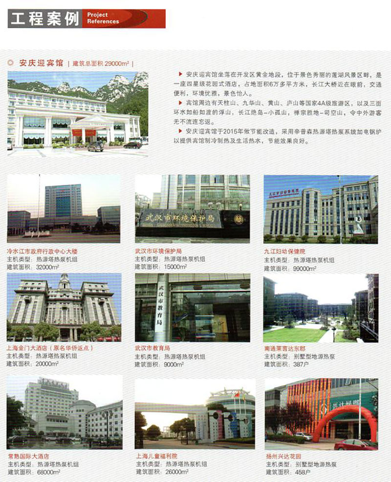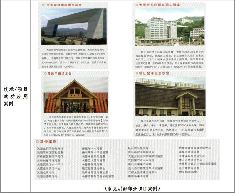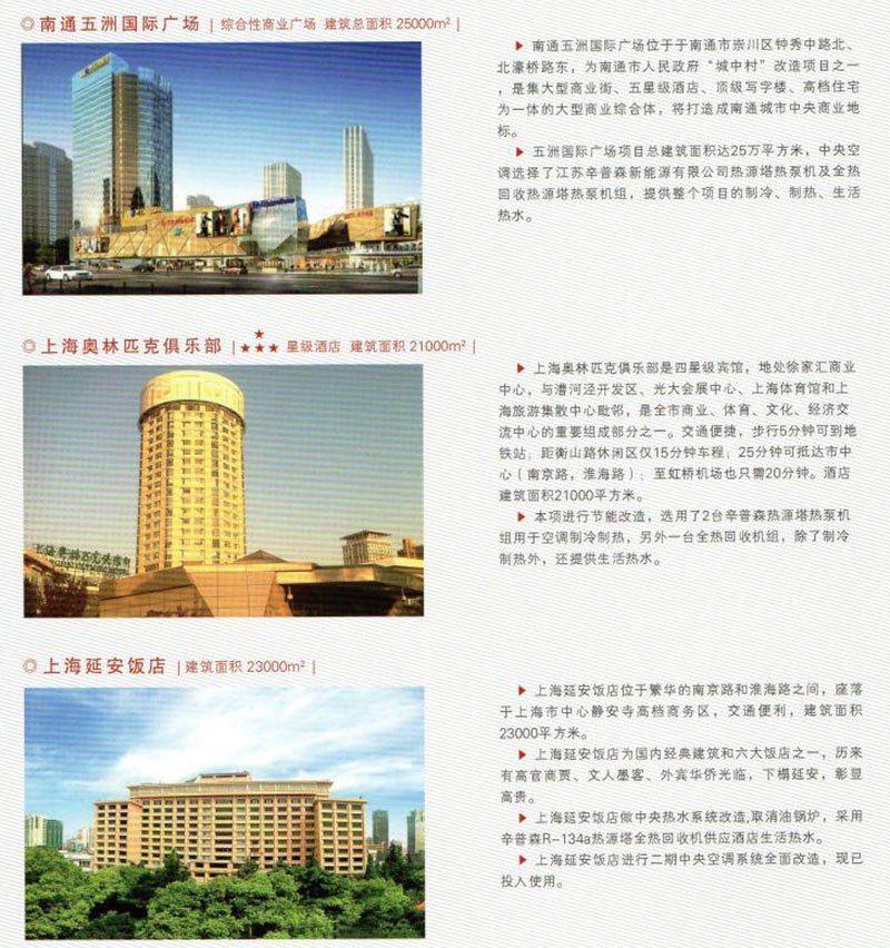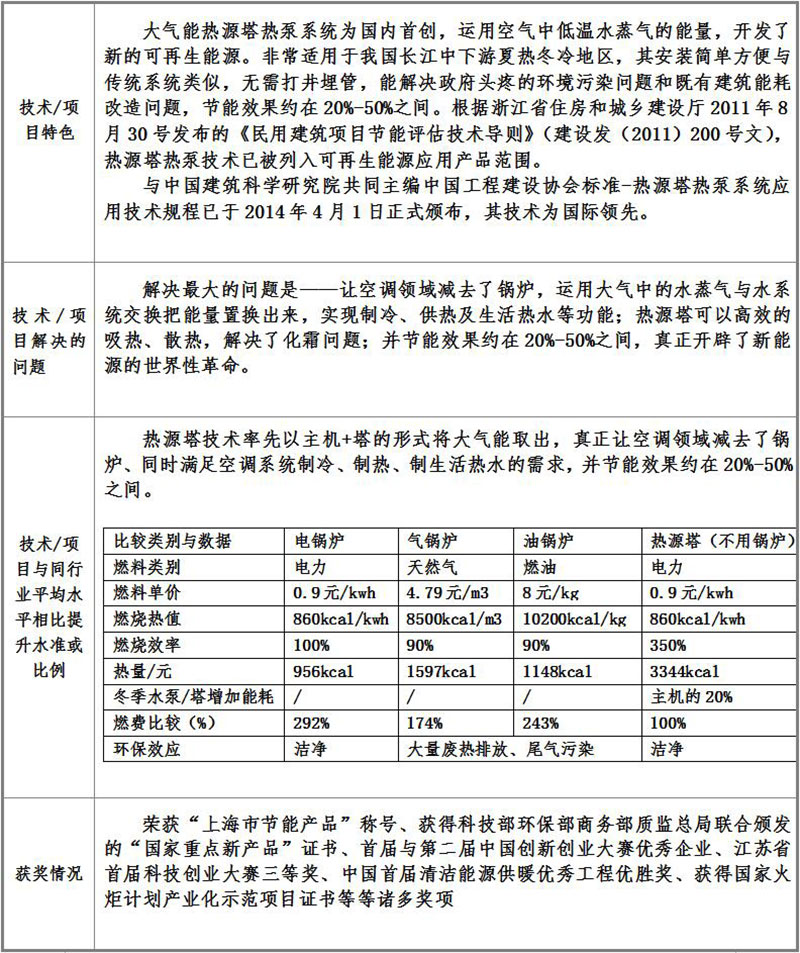 中國建筑科學研究院與江蘇辛普森新能源有限公司共同主編的中國工程建設協會標準-熱源塔熱泵系統應用技術規程已于2014年4月1日正式頒布,可見其先進性受到國家的肯定。(以上海為例)在上海市政大廈、上海瑞金醫院、上海延安飯店、上海虹橋機場航管樓、上海奧林匹克賓館、上海金門大酒店、上海兒童福利醫院等項目已有應用實例。大氣能熱源塔技術還在杭州華北飯店、開元名都大酒店、南通五洲國際廣場、張家港澳洋醫院等等成功運用;真正讓空調系統中減去了鍋爐、實現制冷制熱制取生活熱水為一體,并節能效果約在20%-50%之間,真正開辟了新能源的世界性革命。