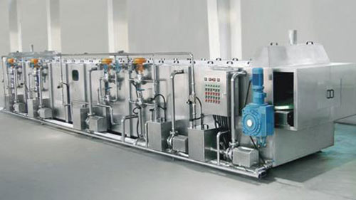 連續噴淋式殺菌冷卻隧道采用循環溫水預熱、循環熱水殺菌、循環溫水預冷,再用冷卻水噴淋冷卻,四段處理形式;具有殺菌溫度自動控制、殺菌時間無級可調等優點